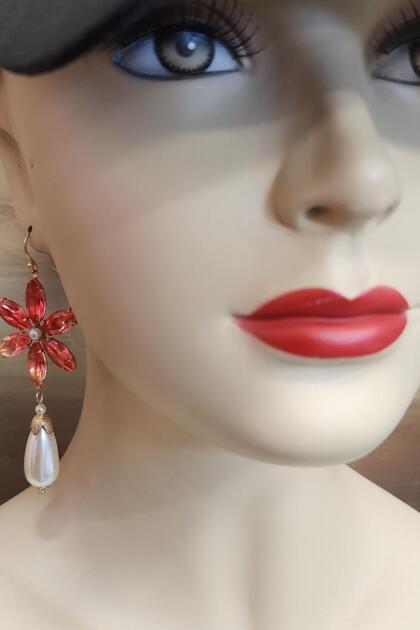 ANTIQUE PINK Clover Cross Faux Diamond Dangle Earrings