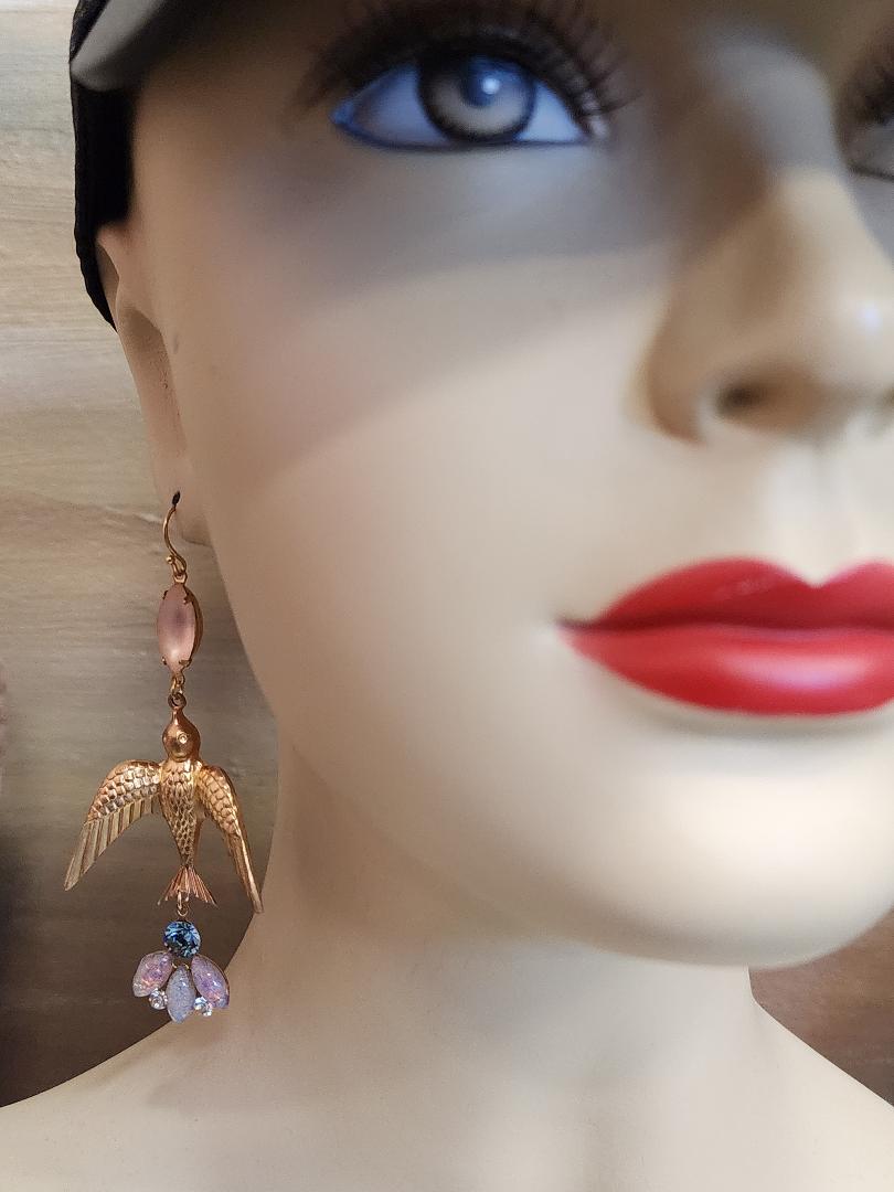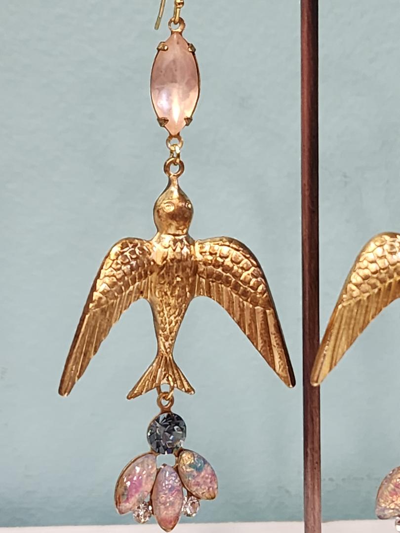 Tags behold jewelry, behold jewelry and designs, brass bird earrings, brass sparrow earrings, cool earrings, dangle earrings, drop earrings, fire opal glass stones, marlene reisler, raw brass earrings, romantic earrings, spring earrings, unique earrings, vintage style earrings, vintage vibe earrings