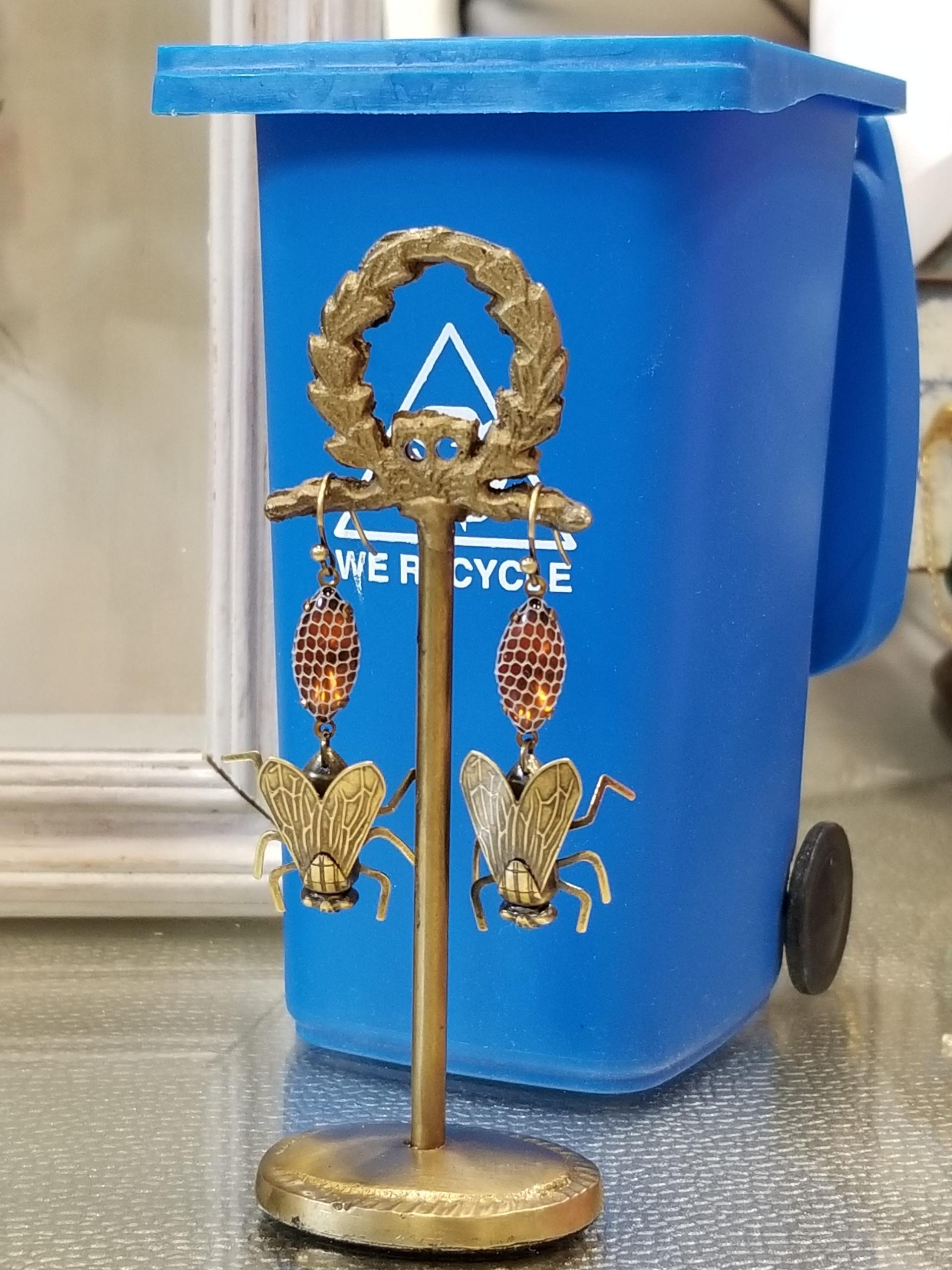 People will definitely catch a buzz off of these FLY earrings. You will only attract humorous people while wearing these, and you’ll be able to weed out and repel the buzzless. These antique brass fly earrings have movable and delicate legs. The earrings alo feature rootbeer brown, netted vintage Swarovski crystals. The approximate length of the earrings is two inches. Enjoy!
