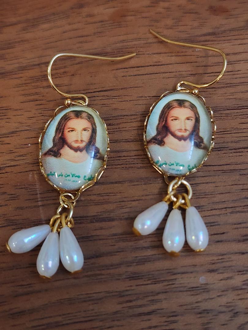 Jesus Cameo and Pearl Earrings