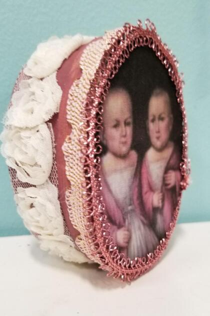 Primitive Folk Art Portrait of Pink Twin Babies Decorative Box